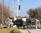 Overturned tractor trailer, vehicle involved accident