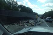 No injuries have been reported, but traffic in the area is delayed while the scene is cleared of the wreck.