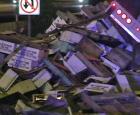 A semi-truck carrying a load a honey bees overturns on Interstate 5 near Lynnwood, Washington, Friday (April 17) spreading boxes of live bees across the highway.