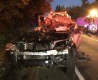 A preliminary investigation found that the car was traveling north on Alderwood Mall Parkway when it crashed into a semi tractor-trailer that was parked on the side of the road.